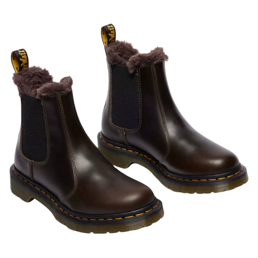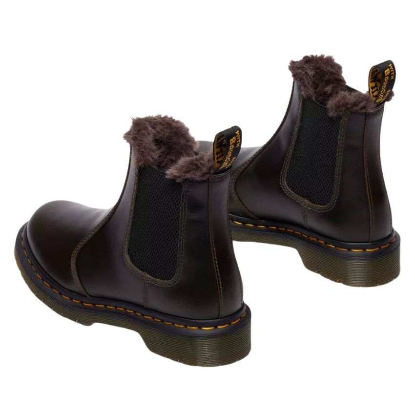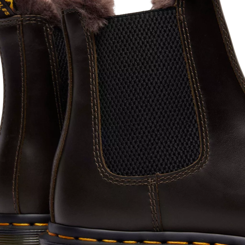 The modified 2976 Chelsea boot takes on a tonal aesthetic while serving winter-ready practicality. Orleans leather, a lightly textured variety that subtly lightens in colour as it moves. Fitted a cosy faux fur WarmWair lining. The scripted heel loop and yellow welt stitching stay true to the original DM’s Chelsea boot, and the silhouette is finished with a trans BEN sole and a lugged undersole for traction in all elements.