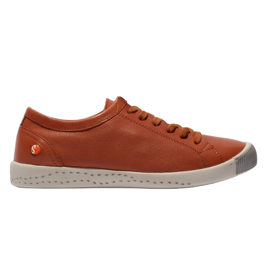 Isla is the classic super comfy soft leather, go anywhere, trainer. Finished in a brick (tan/red) washed leather with a comfort insole.