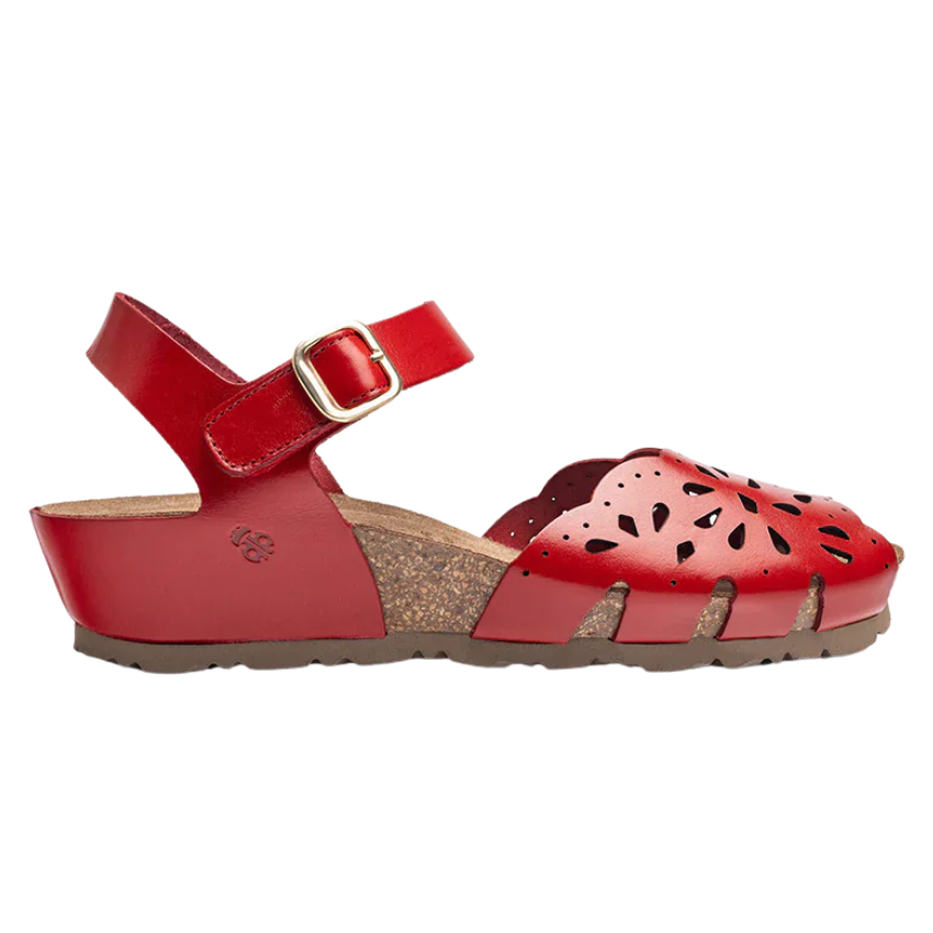Yokono's classic Monaco 247 Sandal that combines style + comfort. It's designed well with chic cut out leather and decorative buckle that is velcro closure. The lipstick red colour is perfect to match with all things, while adding a unique bright flare to your outfit. Handmade in Spain with high-quality leather and comfort insole, it’s the perfect choice for those who seek quality and style at all times.