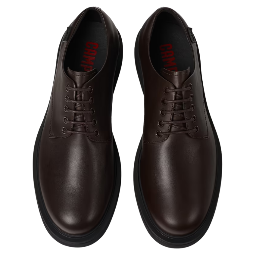 Brown calfskin leather shoes for men with XL EXTRALIGHT® EVA outsoles. Smart but carefree, Norman is timeless, weightless, and undeniably Camper.