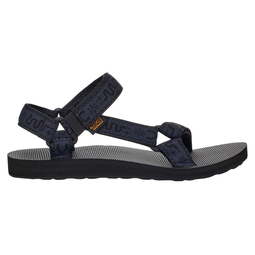 Original Universal men's fabric strap Sandal from Teva. Made from recycled Plastic bottles, with various velcro adjustable straps. Super light , comfy and Eco friendly!