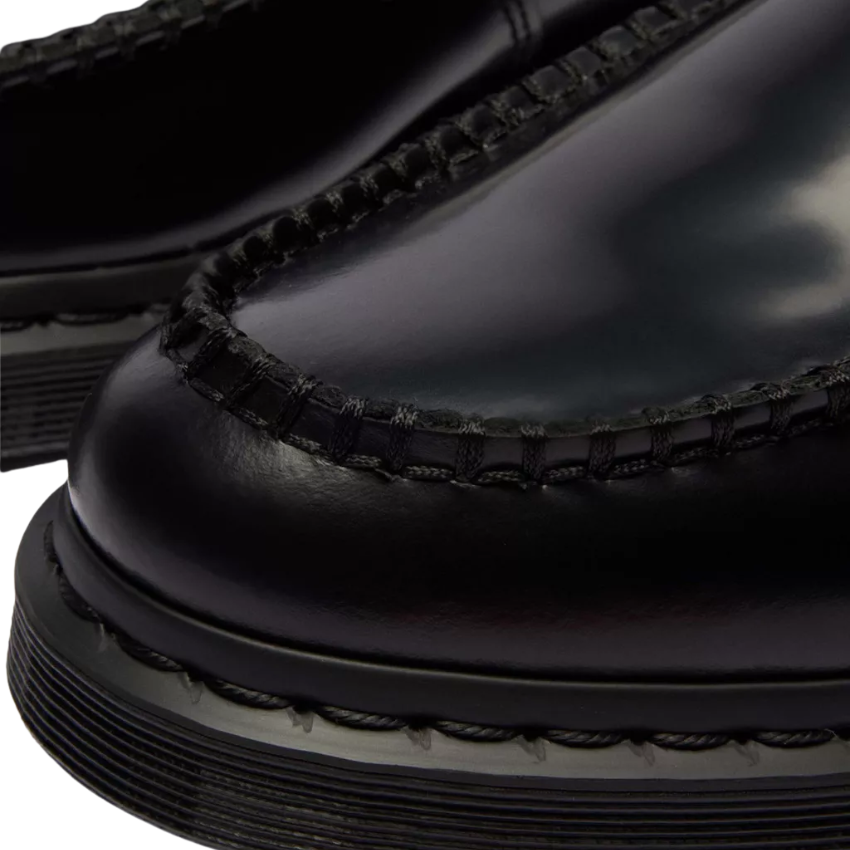 A minimalist classic. The sleek and versatile silhouette is highlighted with moc toe and penny strap design details and set on a traditional DMS bouncing sole with a black-on-black welt stitch.
