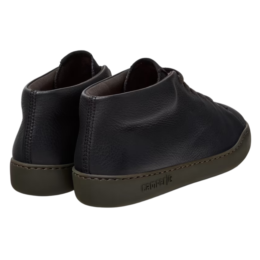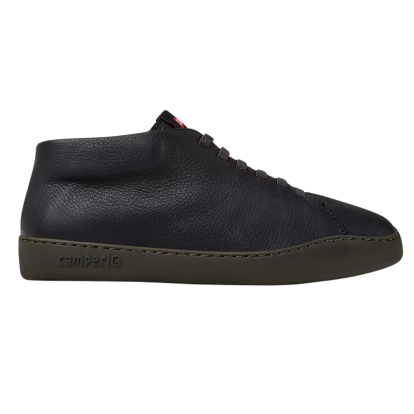 Black calfskin leather sneaker booties for women with OrthoLite® Recycled™ footbeds, elastic laces and EVA outsoles. Peu Touring is a sportier version of our iconic Peu, enhanced with technical upgrades and a recognizable curve on the outsole.