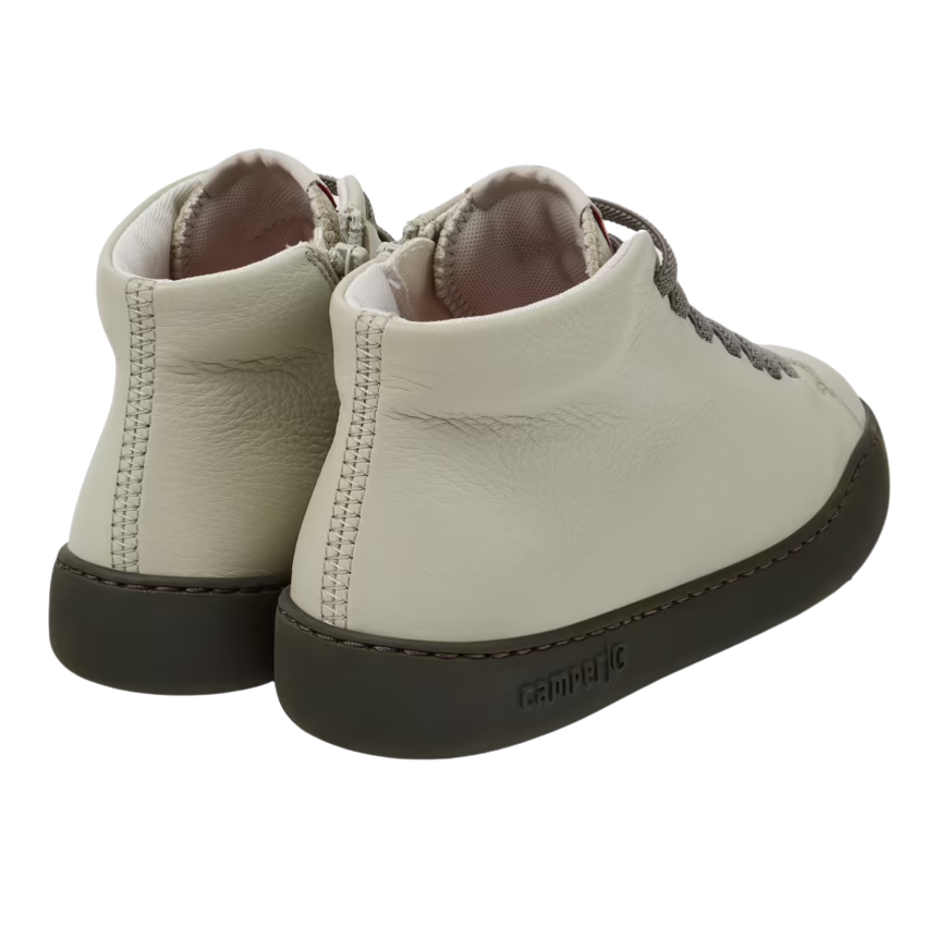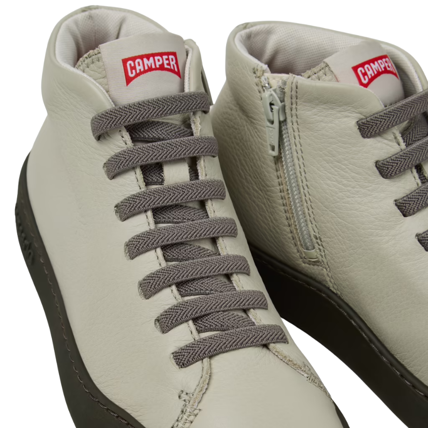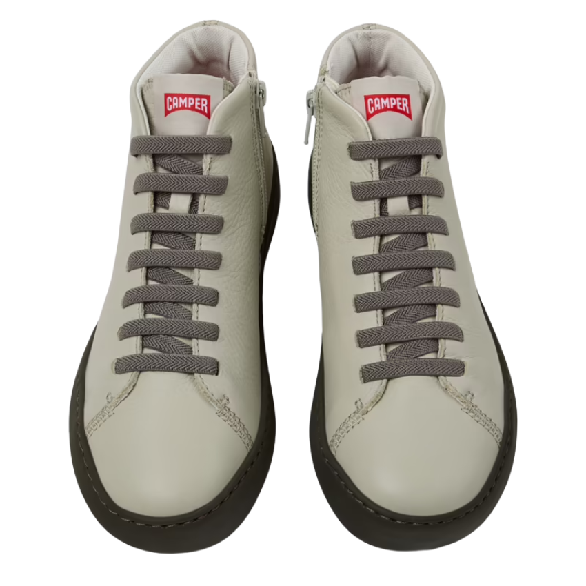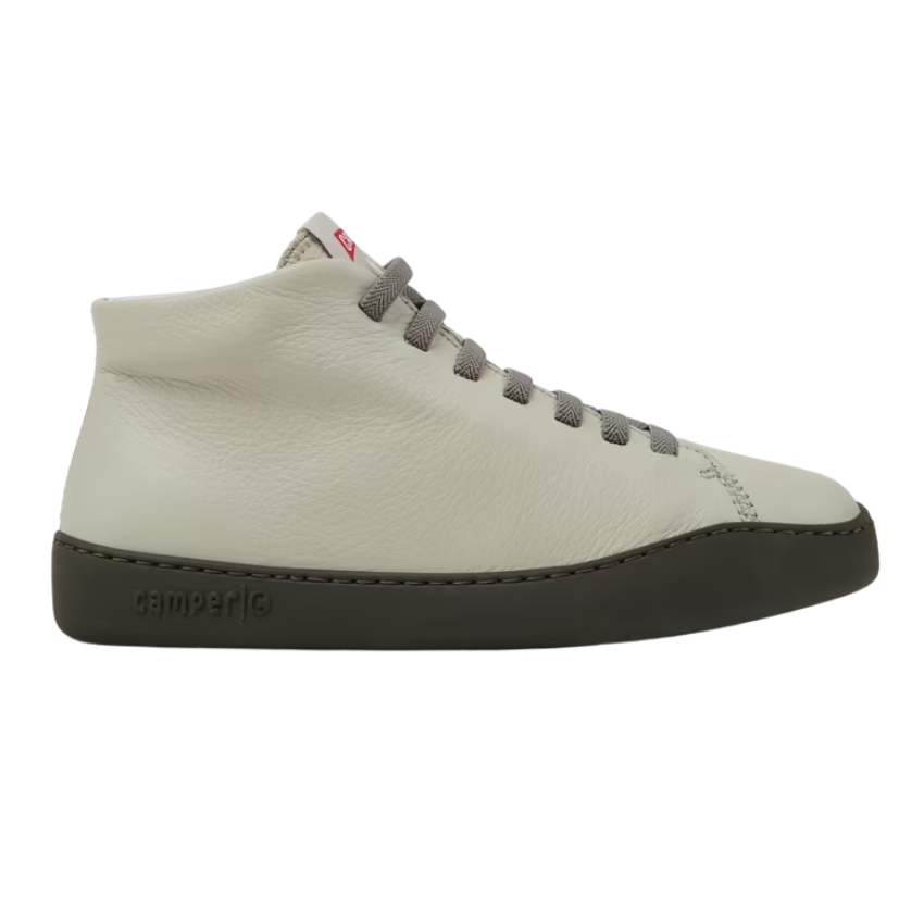 Off white calfskin leather sneaker booties for women with OrthoLite® Recycled™ footbeds, elastic laces and EVA outsoles. Peu Touring is a sportier version of our iconic Peu, enhanced with technical upgrades and a recognizable curve on the outsole.